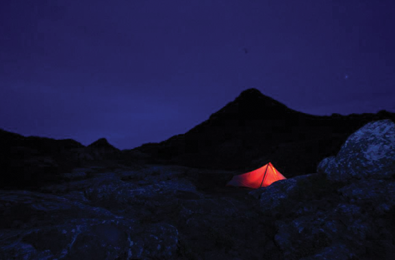 Start the 3-to-4-hour hike to the crater; set up the camping site.